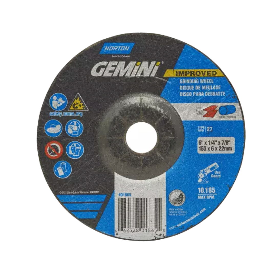 Norton Gemini, 9" x 1/4" x 7/8", Type 27 Aluminum Depressed Center Grinding Wheel