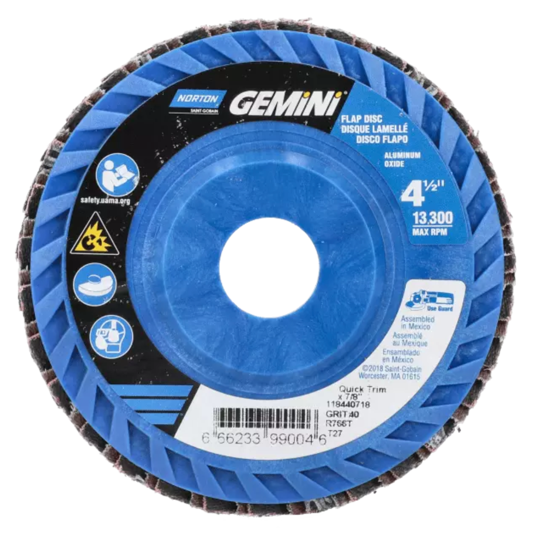 Norton Metal R828, 4-1/2" x 5/8-11" 60 Grit, Type 27 Flat Flap Disc