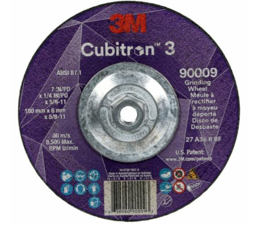 3M Cubitron 3, 7" x 1/4" x 5/8-11", T27 Quick Change Depressed Center Grinding Wheel